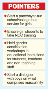 His second suggestion was ensuring scope for enrolment in the National Cadet Corps (NCC) for girls within easily commutable distance. “Many girls, it has been reported, say that they feel safe in the uniform. Perhaps women’s organisations can help bridge the gap between school authorities and the NCC,” he said.