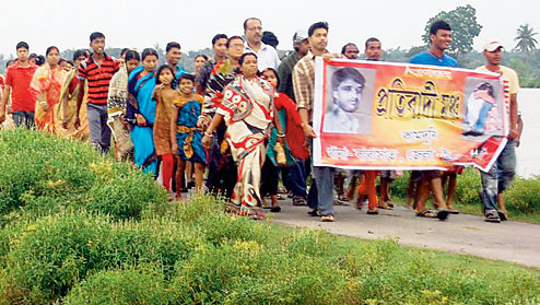 | Kamduni villagers in a protest march over the rape and murder |