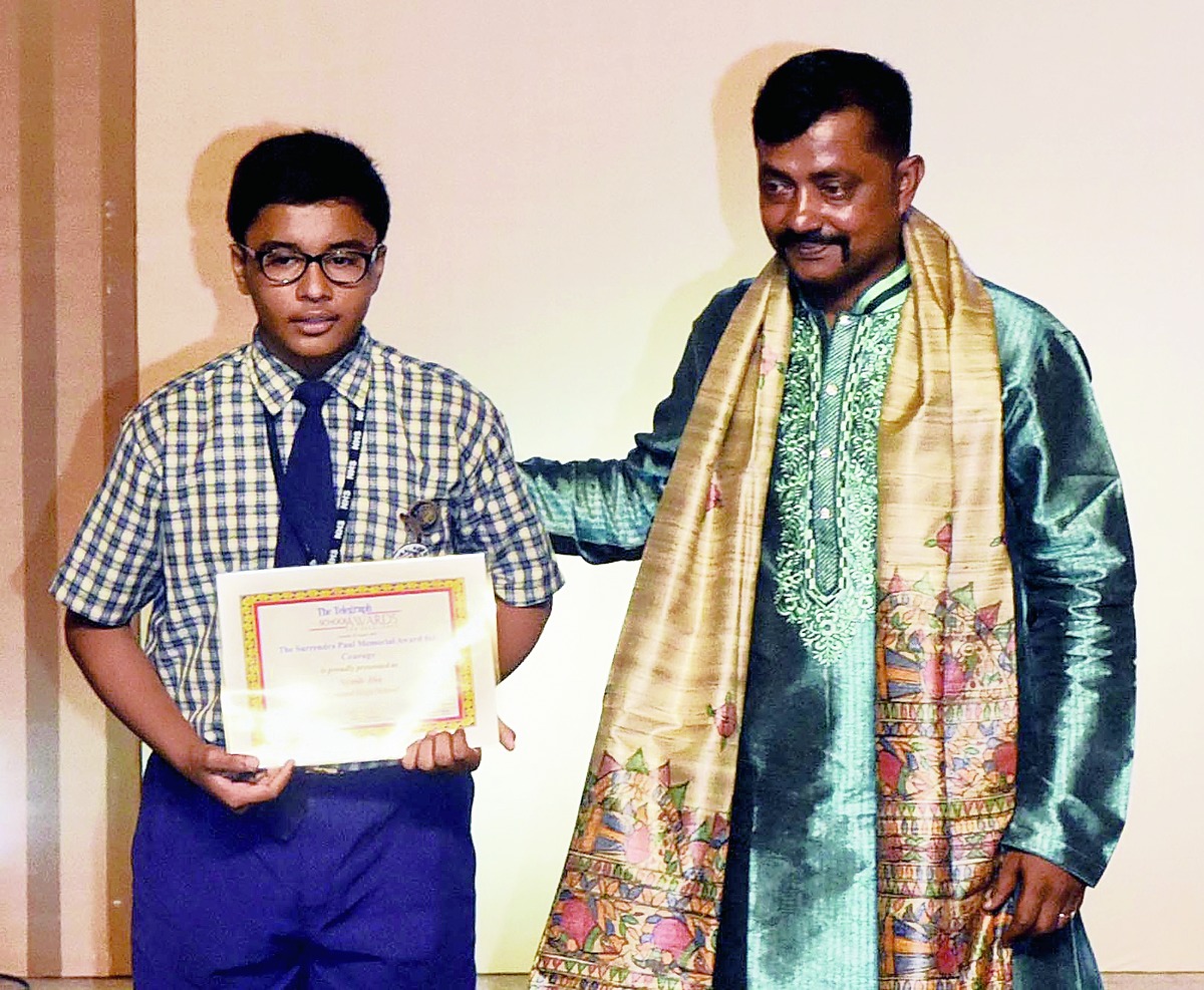 This Class X student of National High School was one of the recipients of the Surrendra Paul Memorial Award for Courage at The Telegraph School Awards for Excellence 2018 on Saturday, the inspiring story of his success in the face of odds inviting loud applause from a packed audience at Science City.