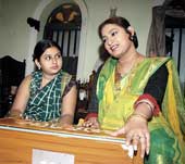 | Husband Sudip Bandopadhyay may be striking a discordant political note, but Nayana Das is making music. With child artiste Baisakhi Chattopadhyay by her side, she is busy shooting for Anindyo Sarkar’s megaserial Alokito Ek Indu. Picture by Aranya Sen |