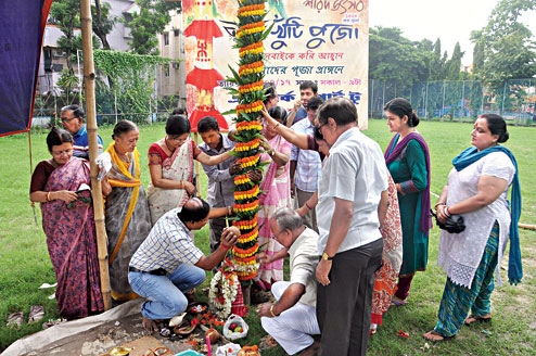 DL Block Residents’ Association held its khuti puja on Independence Day. “We would have performed it sooner but our decorator wanted to wait till the rains subsided. He said August 15 would be appropriate and so here we are,” said Rishav Chatterjee, a volunteer in the puja.