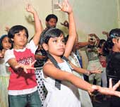 The Bharatanatyam students learnt their steps last weekend under the watchful eye of Aishwarya Rai Bachchan, who chatted and joked with them and even made sure her “little ones” were given fruits and water to beat the heat, on the sets of Mani Ratnam’s Raavan.