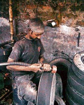“We only retread tyres of taxis and mini-trucks. Better equipment is needed to retread bus and truck tyres,” said an owner of an illegal unit on Blockmann Street.