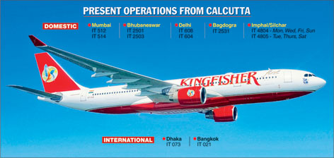 Aviation sources said Kingfisher flights from Calcutta had been irregular for the past few months, with the airline cancelling a few flights almost daily. Records with the directorate-general of civil aviation suggest that Kingfisher had in the past few months cancelled more than 250 flights.