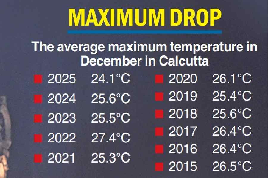 The average maximum temperature in the last fortnight of December was three degrees below normal in Calcutta this year.
