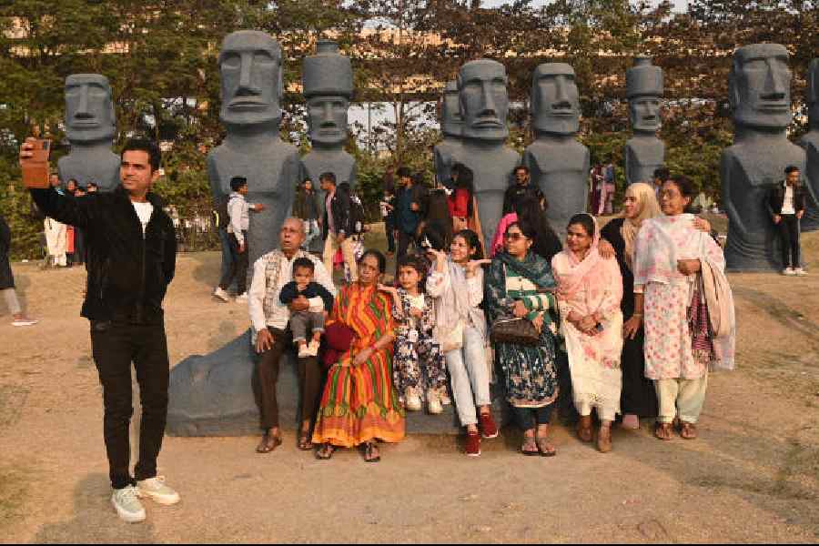 For those who braved the cold, Eco Park was the destination of choice. The replicas of the seven wonders of the world remained the most popular selfie spots, while food counters saw long queues. Many families spread mats, bed sheets or newspapers on the lawns to eat together.