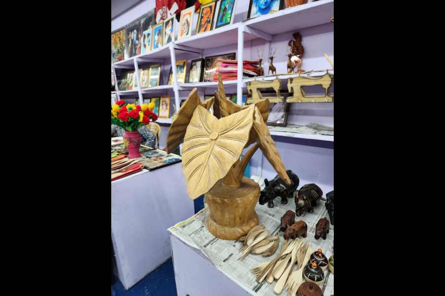 Stall: Jalpaiguri 42 This stall surprises visitors with a striking 2.5-ft flower pot where the leaves, stem and pot are carved entirely out of wood. “It’s segun wood that my father and I carve. It takes two months of work,” says Mohua Zharami of Jalpaiguri, who has also created elephants and other sculptures in this style. Price: Rs 6,500