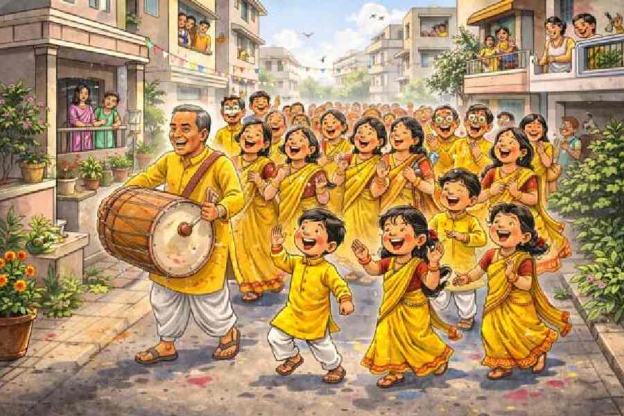 It begins with the prabhat pheri — an early morning procession that starts with songs of spring and ends with people arguing about the correct lyrics. Residents in slightly crumpled outfits in various shades of yellow march around the block, singing enthusiastically, if not melodiously. Someone always brings a dhol; someone else always insists he could play it better.