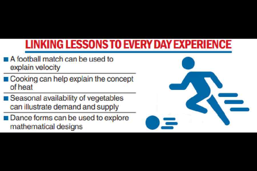 Under the proposed framework, a football lesson could double up as a class on velocity for students in Classes VI or VII, while a kitchen garden might serve as a laboratory for understanding demand and supply, biology concepts or even the properties of heat.