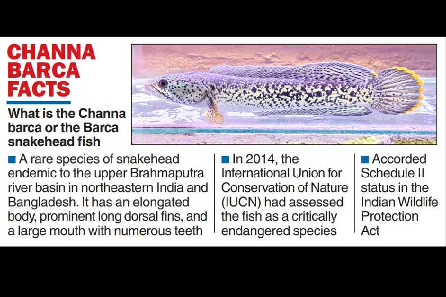 The Channa barca was accorded Schedule II status under the Wildlife Protection Act through an amendment in 2022, which came into effect on April 1, 2023. The protection means trading in the species is illegal and can lead to up to a three-year jail term, forest officials said.