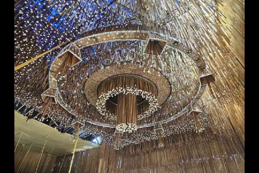 The look: The pandal will be modeled on a Dubai hotel, rising to a height of 70ft and spread across 100ft. The 12ft idol will be an artistic one and will have two companions. A smaller idol will be worshipped. It is being crafted at a studio in Bara Jagulia.