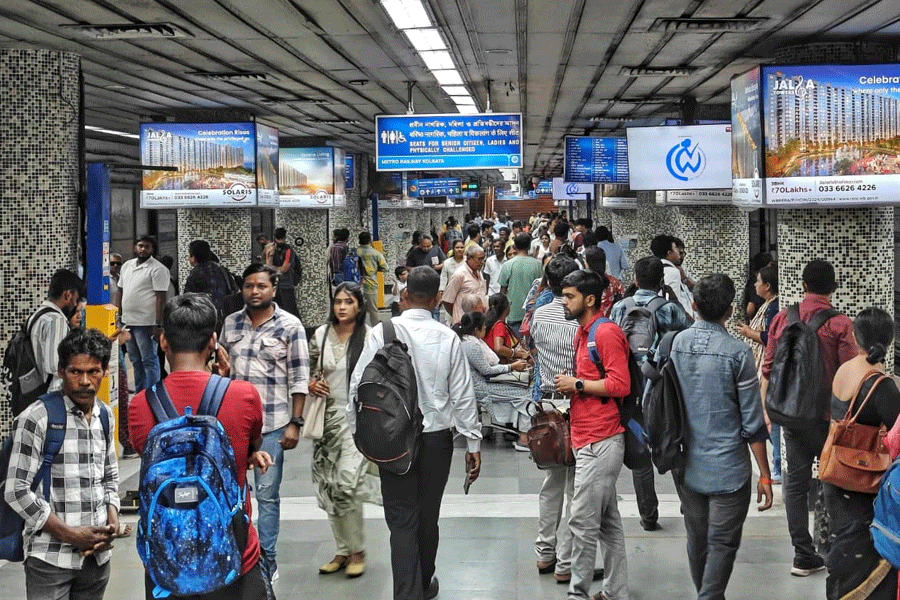 Chaos at Esplanade metro station due to disruption in metro services. (Picture by Soumyajit Dey))