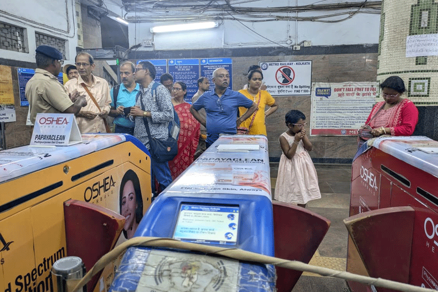 Chaos at Dumdum metro station due to disruption in metro services. (Picture by Amit Dutta)