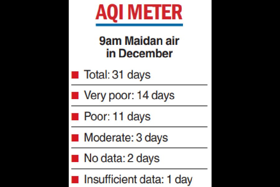 The Victoria Memorial air quality monitoring station, which reflects air quality across the Maidan — one of the city’s most frequented open spaces — recorded 14 “very poor” days and 11 “poor” days in December. Only three days were categorised as “moderate”, while data was unavailable for three days due to technical issues.