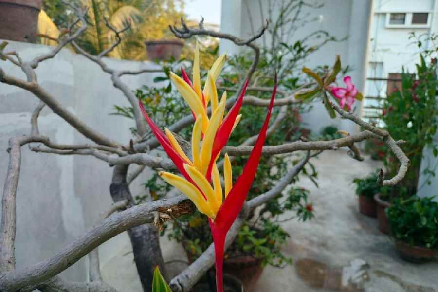 I want my plants to attract nature — birds, butterflies, ladybirds…. Even till 2017, I would see six or seven colours of sunbirds in the garden, but now there are only five or six of them in total. So my criteria for choosing which plants to pot depend primarily on how much nectar they have. I have Hibiscus, Madhabilata, Allamanda and Lemon as their flowers hold a lot of nectar, which attracts birds and other creatures.