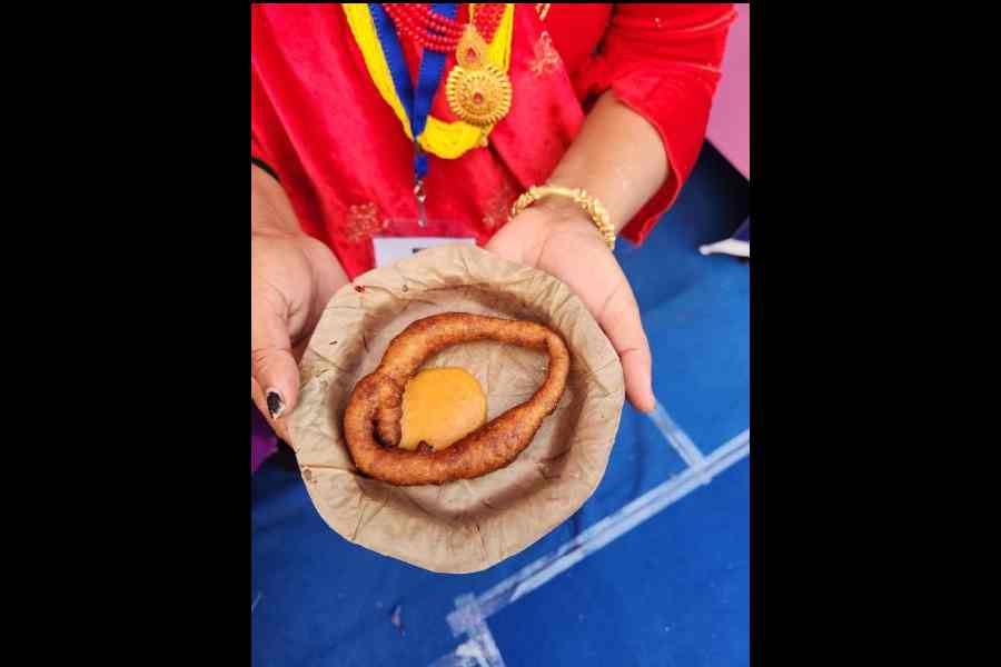 What: These ring-shaped snacks are made of rice, suji and date jaggery, giving them a mildly sweet flavour. “They are served with a spicy sauce made of tomato and peanut, and the two make a tasty combination,” says a vendor from the Alipurduar stall. “Sel roti is a popular dish in north Bengal and Nepal, and is a must at all festive occasions back home.”