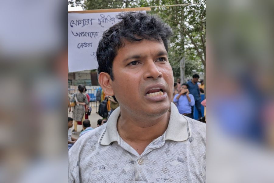 “We are untainted. But so are several people from Group C and Group D. After today’s verdict, I don’t know how to face them. I am not satisfied with the fresh order. This job for me was not just my profession. I had earned respect for myself. Who will take the responsibility of the dent on my respect? It is the administration who is liable, right? Who gave me a job? SSC. Who took my job away? SSC. I did not lose my job because I was at fault. I lost my job because the employer was not honest. My parents gave me a name, and I made my own identity. However, my new name is ‘banchito jogyo (deprived though qualified)’,” said Pradipta Ghosh from Madhyamgram, mother of a son.