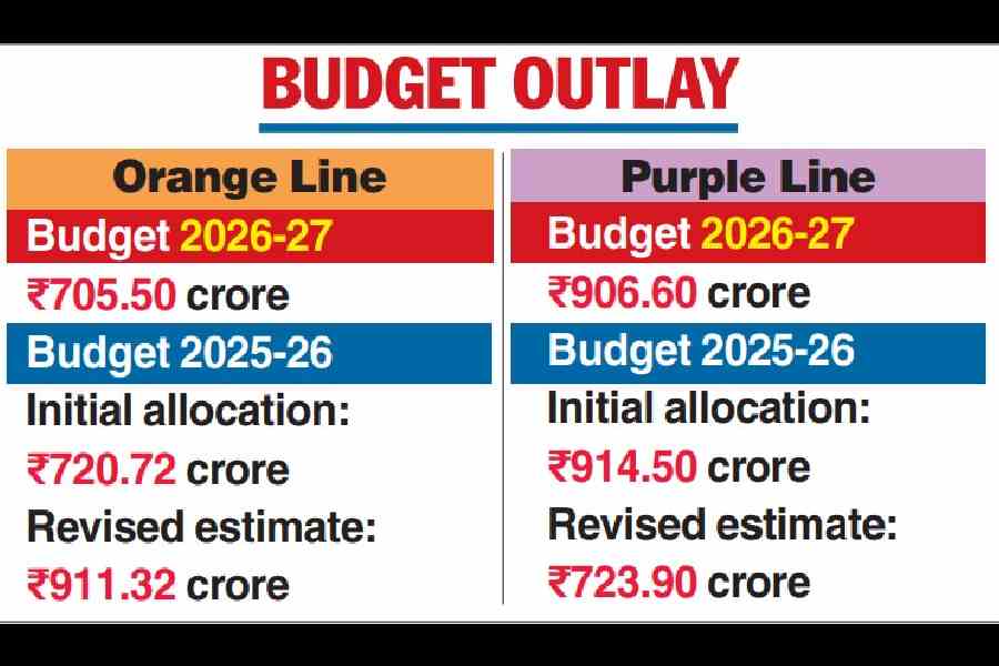 The budget proposed ₹705.50 crore for the Orange Line and ₹906.60 crore for the Purple Line.