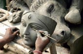 “A few years ago, when the trend for theme Pujas gained popularity in Calcutta, I thought we could explore the overseas market better. To make our presence felt, we need to use modern technology and market ourselves better. Our email addresses were created in 2004 and in 2005, we created our own website,” said Prodyut, who has two e-mail addresses. His website is www.kumartuli.com. “In 2004, we got only one order through the Internet, but it grew thereon and in 2007, we have got six orders,” said Prodyut.