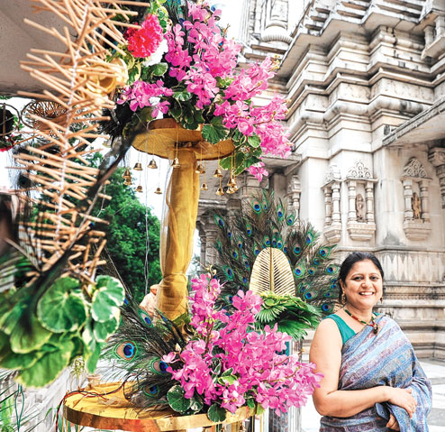 “Doing the Jhulan décor is my biggest project, even though I do floral designs for weddings, embassy parties and other big events too,” said Kruti. “And every year I do completely new designs. I haven’t repeated a single design for the temple Jhulan in the past eight years,” she pointed out proudly.