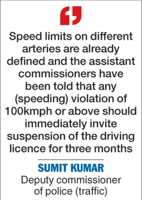 "Speed limits on different arteries are already defined and the assistant commissioners have been told that any (speeding) violation of 100kmph or above should immediately invite suspension of the driving licence for three months," Sumit Kumar, the deputy commissioner of police (traffic), told Metro.