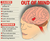 Excessive consumption of alcohol, food habits, lack of exercise and nutrition deficiency are also causing memory loss among the people, said NNC?s R.P. Sengupta. ?Preventive measures need to be taken early.?