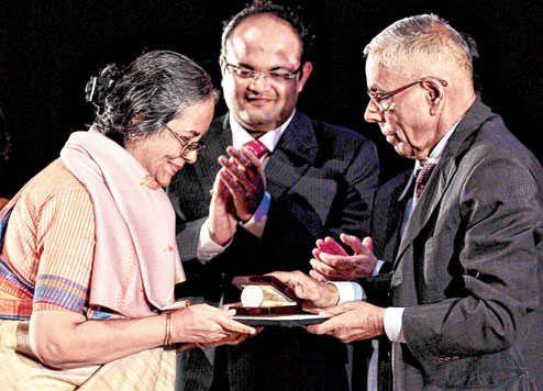 Shyamasree Lal was among the first teachers to join the school in April 1954. “At that time it had started with a completely different kind of vision. It was a purely Tagorean institution and not conventional at all,” said son Ananda Lal, who received the honour on behalf of his mother as her health did not permit her to attend the programme.