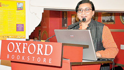 | Antara Dev Sen conducts the panel discussion on Sunil Gangopadhyay at Oxford Bookstore |