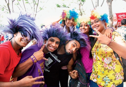 | The rainbow tops look neutral but these fans are celebrating a Knight victory at Eden. Pictures by Bishwarup Dutta & Bibhash Lodh |
