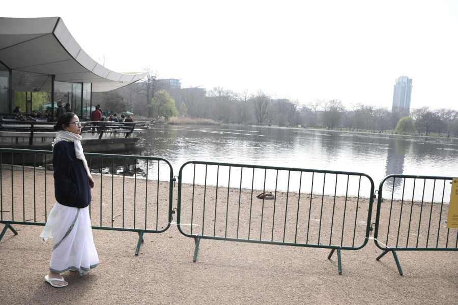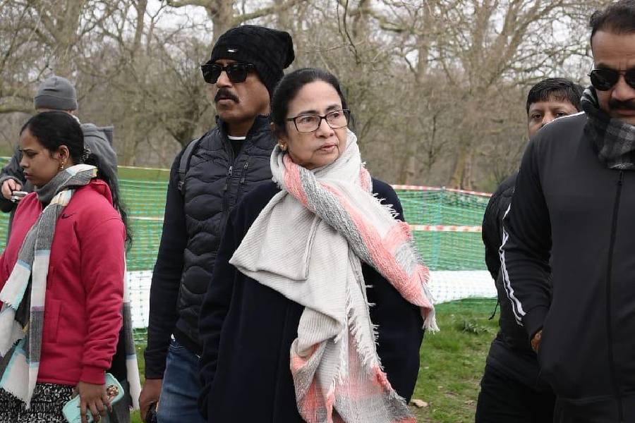 West Bengal Chief Minister Mamata Banerjee, known for her tireless energy, was seen jogging through London’s Hyde Park in a saree and her signature slippers, setting a brisk pace that left her entourage struggling to keep up.