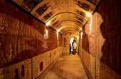 The 130ft x 25ft pandal is modelled on Zivggura temple or sopan mandir. The entrance is through a tunnel, whose sides are dotted with pictographic representations and paintings of over 500 figures, including those of monarchs, royal priests, royal seals, birds and snakes.