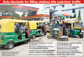 Around 200 auto drivers split into groups and blocked Baghajatin More, Sulekha More, Jadavpur 8B crossing, Garia intersection and the Patuli-Baishnabghata crossing from 9.15am to 10.30am, shouting slogans demanding more filling stations.