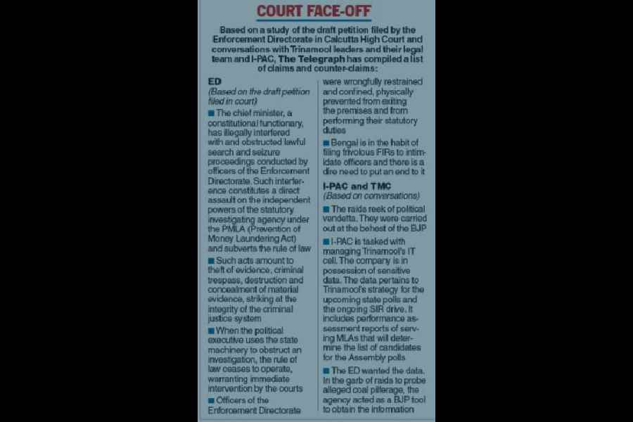 Mamata Banerjee on Friday cited the right to self-defence to justify her actions from the day before when she barged in during Enforcement Directorate raids on I-PAC, her party’s poll strategist, and walked away with “sensitive” documents.