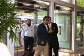 | Trinamul Congress leader and Team Pakistan’s local manager Sultan Ahmed escorts star bowler Shoaib Akhtar to the hotel on Tuesday. Picture by Santosh Ghosh |