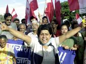 | Nepali Congress activists hold placards and shout slogans during a demonstration protesting against the Maoist blockade in Kathmandu. (AFP) |