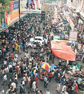 There was not an inch of parking space on either side of Rashbehari Avenue. The pavements had disappeared under hawkers and their ware and a sea of shoppers. Some men tried hard to lure customers to air-conditioned shops. But with shoppers packed like sardines inside, the air-conditioning offered little comfort. Grabbing a salesman’s eye or getting your purchase billed called for greater skills.