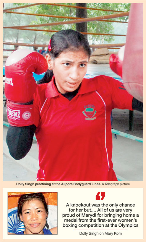 “My elder sister Rinki, who is just 22, won gold in boxing for India in international meets but gave up the sport when nobody offered her a job. But I don’t want to give up so easily, especially now that Marydi has won an Olympic medal in the weight category I compete in,” said Dolly.