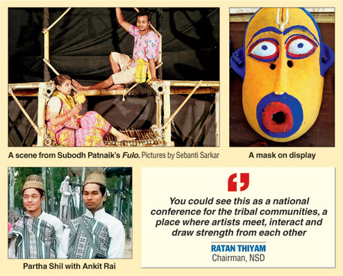 But Adi Bimb was not only about masks. Conceived by Ratan Thiyam, it brought together over 600 artists from Sikkim, Tripura, Arunachal Pradesh, Odisha, Jhargram, Assam, Manipur, Mizoram, Bihar and Bengal. “You could see this as a national conference for the tribal communities, a place where artists meet, interact and draw strength from each other. The stress here is more on linking with the source than showcasing the performances,” said Thiyam, the chairman of NSD.