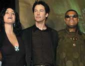 | Actor Keanu Reeves flanked by co-stars Carrie-Anne Moss and Laurence Fishburne at the Los Angeles world premiere of The Matrix Revolutions (AP/PTI) |