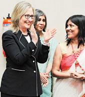 | Urmi Basu (middle) with Hillary Clinton and Sohini Chakraborty of the NGO Sanved at ICCR. (Rashbehari Das) |