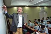 | Kenneth Williams at a Vedic math class in Bhawanipur Gujarati Education Society. Picture by Sanat Kumar Sinha |