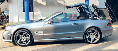 | The Mercedes SL 63 AMG at the Interkrafts workshop in Behala, with its vario-roof that opens and retracts in 16 seconds. Picture by Amit Datta |