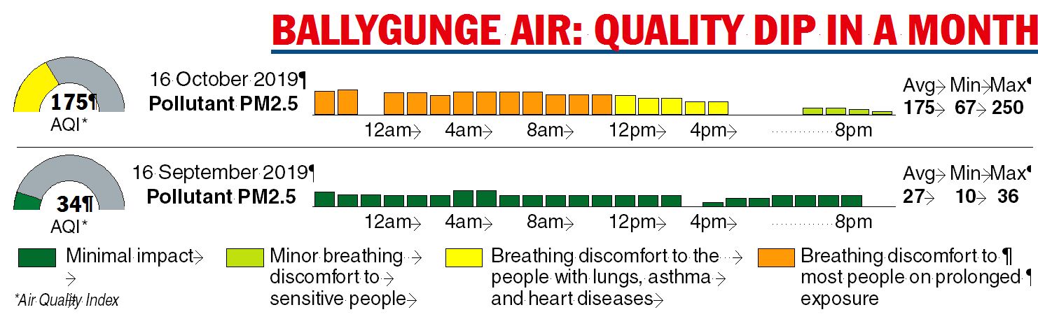 On September 16, exactly a month ago, the readings in Fort William and Ballygunge were in “good” and “satisfactory” range.