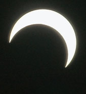 | The annular solar eclipse on Friday was described by scientists as the longest celestial event of the millennium. Calcutta, which did not fall on the path of annularity, witnessed a partial eclipse with the disc of the moon obscuring 76 per cent of the sun at the peak of the eclipse at 1.58pm, said E. Islam, the director of the Birla Industrial and Technological Museum, which organised telescopic projection and viewing through filters for school students. The eclipse was visible between 12.07pm and 3.29pm in the city, where a clear sky provided an unhindered view of the event. “The day temperature dipped to some extent and sunrays dimmed,” S. Sen, the director of the Positional Astronomy Centre, told PTI. Skygazers across town viewed the eclipse through Mylar filters and welder’s glasses. A few followed the custom of not eating during the eclipse and discarding food prepared before the start of the event. The next annular eclipse to be visible from India will be on December 26, 2019. Pictures by Bishwarup Dutta |