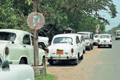 Autos, taxis, buses, cars, lorries and all other types of vehicle that ply the stretch can be found parked on the road though Calcutta police signs proclaiming “no parking” dangle from lamp posts.