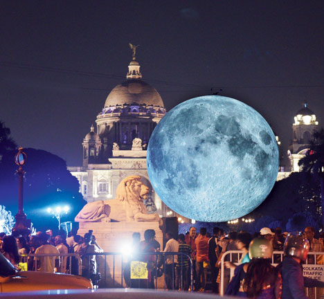 Victoria Memorial: A miniature moon descended on Victoria Memorial on Saturday evening.