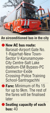 The West Bengal Surface Transport Corporation has tied up with a private operator to ply new AC buses on the Barasat-Santragachhi route, which touches airport gate No. 1, Rajarhat, New Town and Sector V.