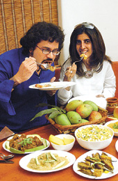 “I’ve been travelling so much that I wasn’t even aware that mango season is here,” said the lean designer, digging happily into her Aam Moong Dal Salad. “I’m a mango addict,” she grinned. Her robust companion was more appreciative of the entire spread. “I love their concept of flavouring a multi-course meal with a single fruit, which you normally taste only in desserts. This makes the whole thing not very aam (read common in Hindi)!” chirped Bikram. He should’ve been an adman, suggested one of his co-diners. “Well, I am a pundit!” laughed the tabla exponent.