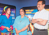 | (From above) Locket Chatterjee, Swagatalakshmi Dasgupta and Sanjiv Goenka attend a film screening at INOX City Centre; a model walks the ramp at a fashion show in Prince of Cal, Sourav’s ; kids try out the karaoke at The International Cafe. Pictures by Aranya Sen and Rashbehari Das |