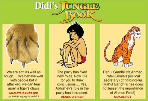 In Delhi, Derek O'Brien showed how by pushing Abhishek Banerjee, the chief minister's nephew, to the frontline and asking journalists to draw their own conclusions on Mukul Roy's role.